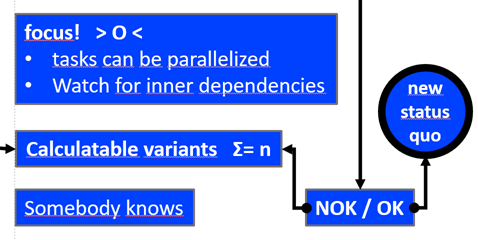 The crucial point is to determine, whether the currently established process is still correct and an unsatisfying result is consequence of wrongful application of the protocol or to determine whether there are amounts of uncertainty that require an additional iteration starting with the red path.