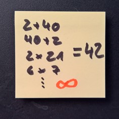 Those who are currently focused, following a straight-forward mindset will answer “42”. And they are right. Those people know the sound of a clapping hand, they know how to describe and demonstrate immediately.